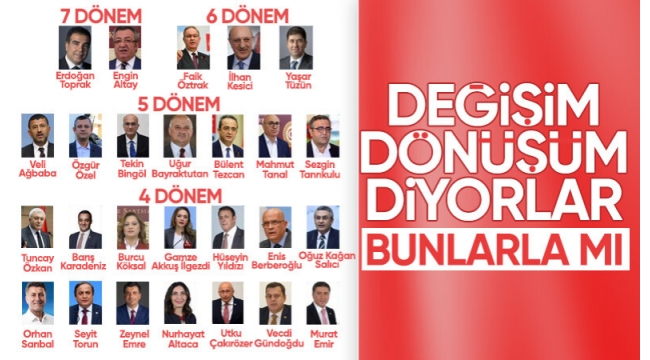 Seçimlerde ağır yenilgi alan CHP'de kimse koltuğu bırakmaya niyetli görünmüyor. CHP'de birçok milletvekili 4 dönemden fazla Meclis'e girerken Erdoğan Toprak, 7 dönem ile rekor kırdı.
